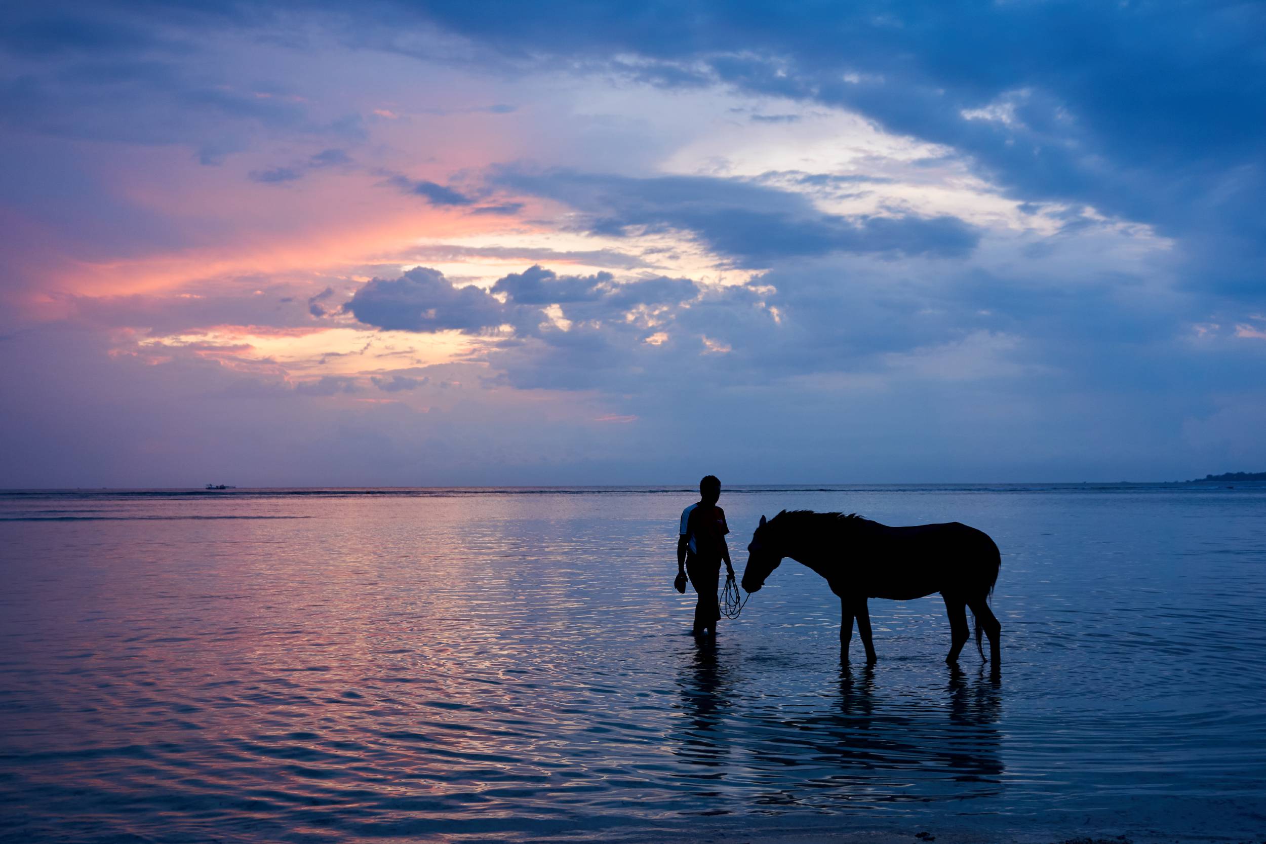 On Gili Air I was lucky to see this scene with a horse being washed in the sea by its owner.